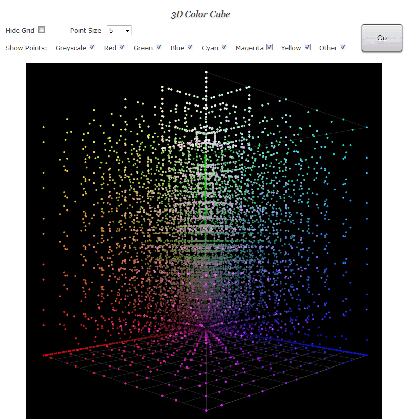 Screenshot of 3D RGB Color Cube of custom 9,137 patch set: