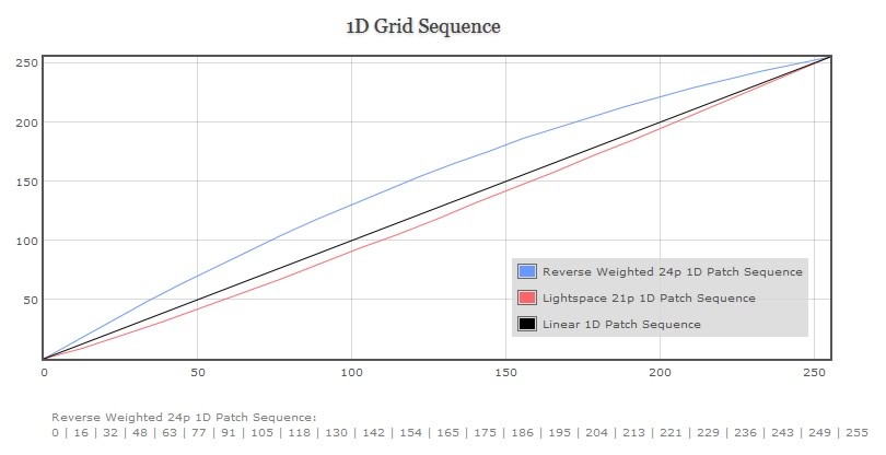 - this section will generate a 3D custom color patch sequence from the options that you have selected. Lightspace internally uses generated grid sequences and if you choose original Lightspace sequence you can see exactly these sequences. But now you can make adjustments to these sequences, making them even more effective for the calibration of your particular display. Supported grid sequence size is 3-50, so the maximum profile size is 50^3.